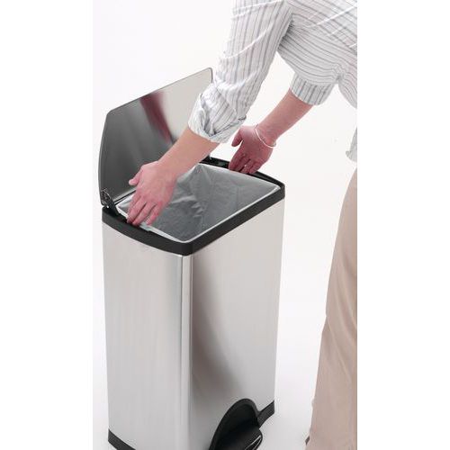 - Designersøppelbøtte med pedal, rektangulær modell. Utstyrt med en eller to plast innvendige beholdere.