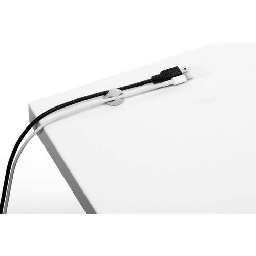 Rund selvklebende kabelholder i myk plast for USB- eller telefonkabel som er maks. 5 mm i diameter. Festes på jevne og rene flater. Få orden på kablene med CAVOLINE både på kontoret og hjemme. Samle kablene slik at det blir ryddigere og enklere å rengjøre.