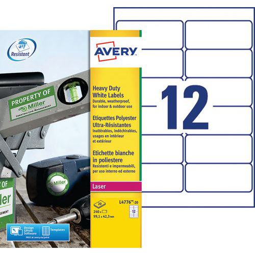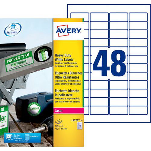 Selvklebende ultraresistent hvit etikett - Laser Trykke - Avery Selvklebende ultraresistent hvit etikett - Laser Trykke - Avery