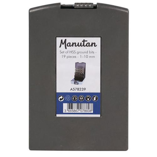 | Varenavn | Sett med 19 HSS sylindriske jordbits, Antall deler: 19, Bruk: Drill, Materiale: Stål |