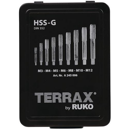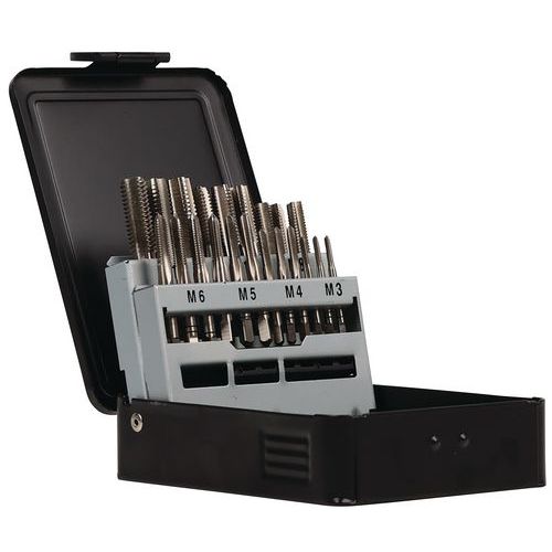 | Varenavn | Sett med HSS håndkraner, 21 deler M3–M12, Bruk: Drill, Materiale: Stål |