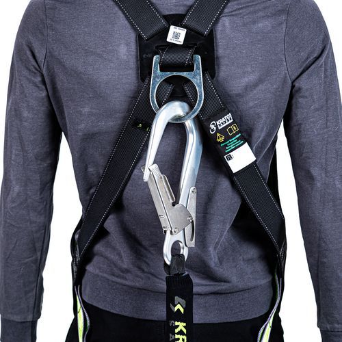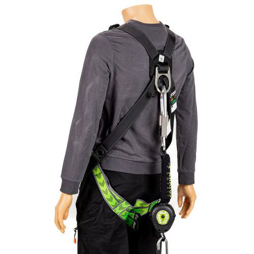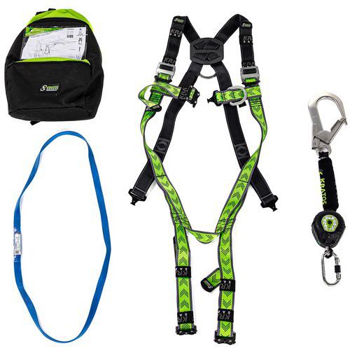 Sett bestående av: 1 spesifikk stillassele, 1 fallsikring med automatisk tilbakestilling stropp 2 m, 1 forankringsring med stropp 20 mm, lengde 0,80 m, 1 ryggsekk med utvendig lomme med glidelås, kapasitet 12L.