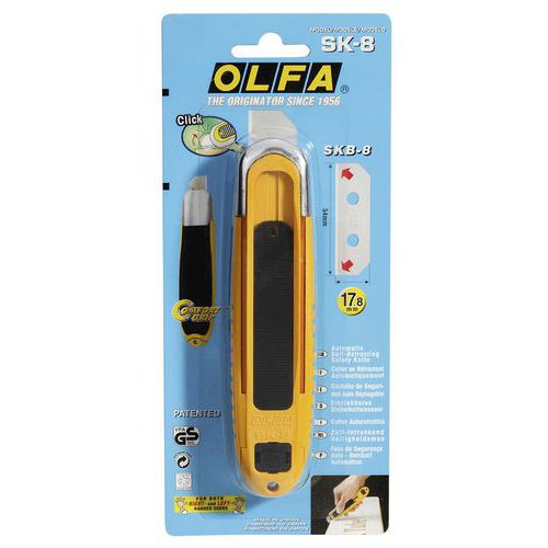 | Varenavn | Sikkerhetkniv Olfa SK8, Innfellbart blad: ja, Farge: Gul, Kjøkken: nei, Hus, materiale: Plast, Blad |