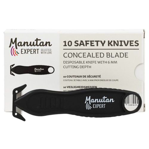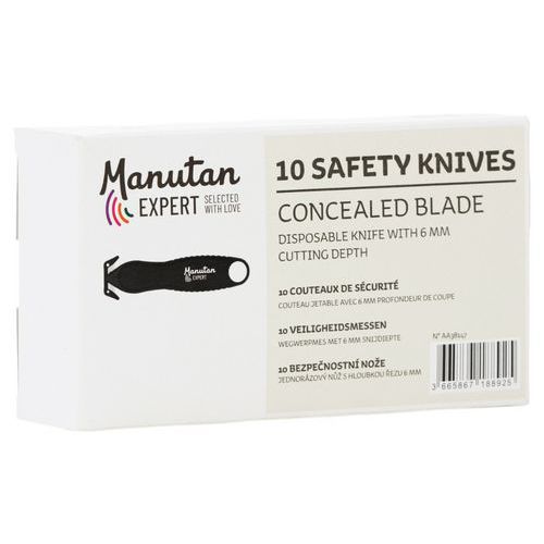 | Varenavn | Sikkerhetskniv med beskyttet blad, Innfellbart blad: nei, Farge: Svart, Kjøkken: nei, Skjæredybde: 5 mm |
