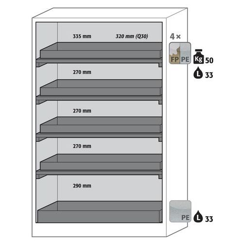 Sikkerhetsoppbevaringsskap Q-CLASSIC-30, Totalhøyde: 1947 mm, Totalbredde: 1164 mm