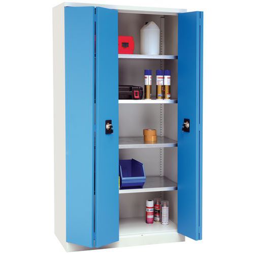 | Varenavn | Skap foldedør høyt, Maksimal last: 500 kg, Materiale: Stål, Totalhøyde: 1950 mm, Totalbredde: 1000 mm |