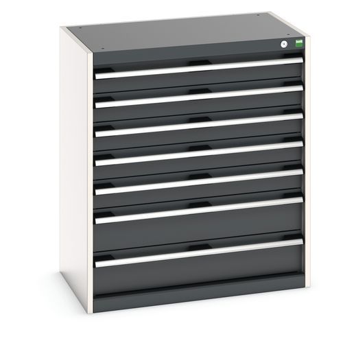 Svært robust skuffeskap av høy kvalitet. Uttrekkbare, fullt tilgjengelige skuffer. Selvlukkende skinner med sikkerhetslåser forhindrer utilsiktet åpning. Skuffehåndtak for plass til etiketter. Skuffelås inkludert. Produsert i Storbritannia Maksimal last (kg) : 1500