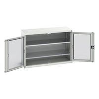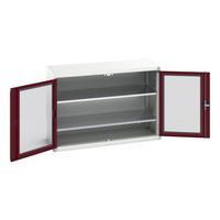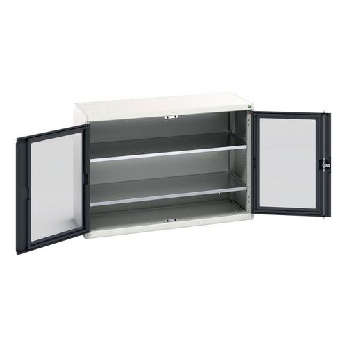 Verso-skap med gjennomsiktige dører. Med 2 hyller. 1300x550x900. Produsert i Storbritannia Maksimal last (kg) : 1000 Maksimal vekt per hylleplan (kg) : 75