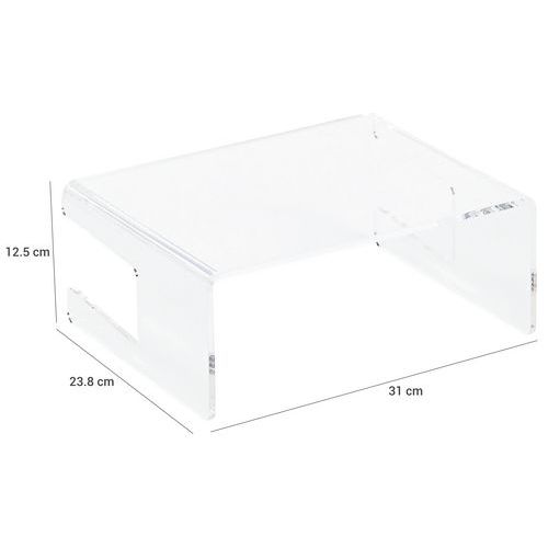 | Varenavn | Skjermstativ av akryl, Maksimal last: 8 kg, Farge: Transparent, Totalhøyde: 12.5 cm, Totalbredde: 31 cm |