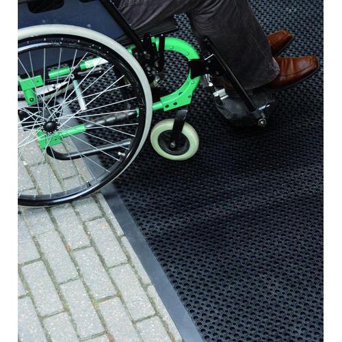 Slitesterkt produkt, passer der det er omfattende trafikk. Dreneringshullene er små, 14 mm i diameter, i samsvar med EUs normer for offentlige innganger.