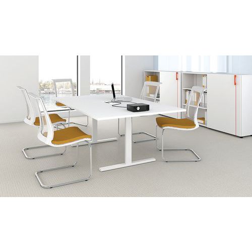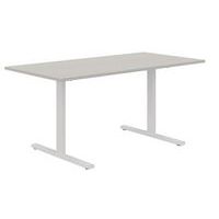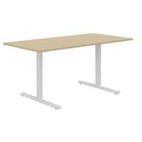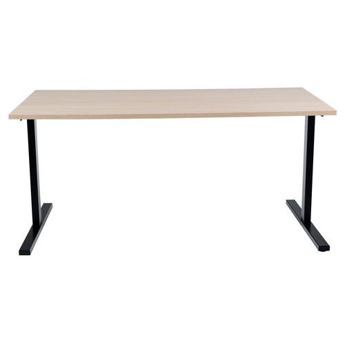 Rett skrivebord med T-formede ben. Melamin benkeplate er 25 mm tykk med en 2 mm ABS-kant. Metallben 796x6x3 mm.