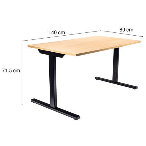 Rektangulært 140x80 cm skrivebord med T-formede ben. Klassisk design – tilgjengelig i flere ulike fargekombinasjoner som passer til alle typer kontorer/miljøer. Benkeplaten i melamin er 25 mm tykk og har 2 mm ABS-kant. Metallben: 796x60x30 mm.