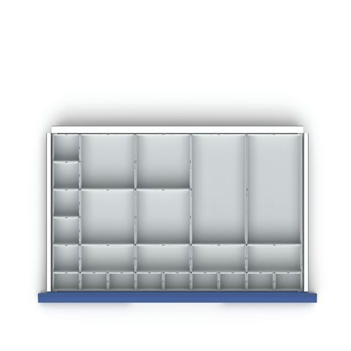 | Varenavn | Skuffdeler H 100x800 – Bott, Høyde: 100 mm, Bredde: 800 mm, Dybde: 550 mm, Antall rom: 16 |