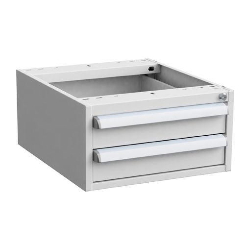 - Skuffeseksjonen monteres under arbeidsbordet - monteringssats inngår.