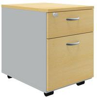 - Mobil skuffeseksjon i bøkedekor, gir praktisk og sikker oppbevaring av dokumenter.