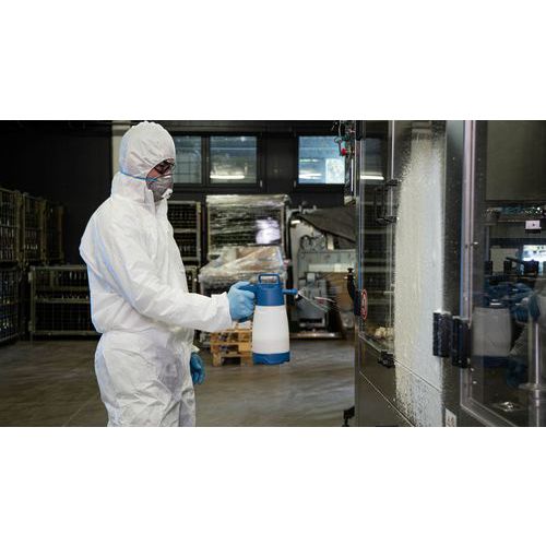 - Sprøyten brukes innen rengjøring, desinfeksjon og bilpleie, og er sikker å bruke med desinfeksjonsmidler, alkalier, ketoner og nøytrale produkter.