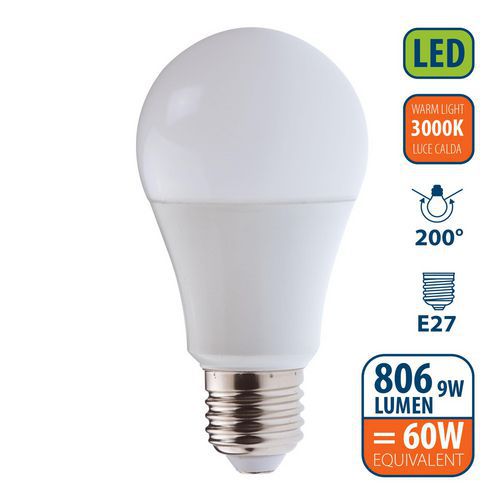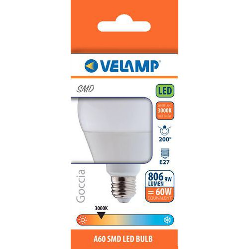 SMD LED-pære, standard, A60, 9 W, E27 hette - VELAMP