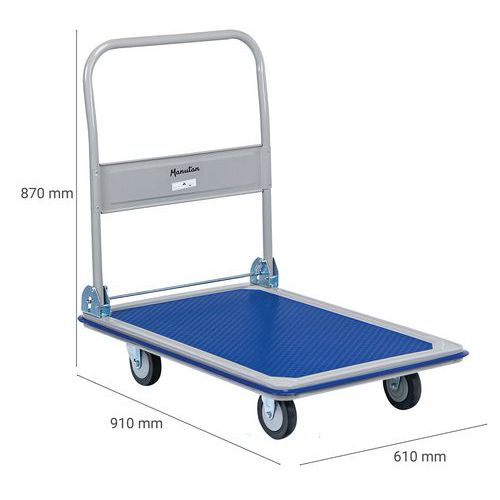 Smidig trillevogn med fellbar bøyle, 150-300 kg, Kapasitet: 300 kg, Totalhøyde: 870 mm, Totalbredde: 610 mm