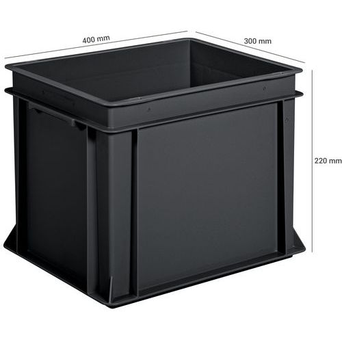 Solid plastboks, EU-standard, i gjenvunnet plast, Volum: 20 L, Kan stables: ja, Totalhøyde: 220 mm Solid plastboks, EU-standard, i gjenvunnet plast, Volum: 20 L, Kan stables: ja, Totalhøyde: 220 mm