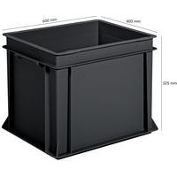 Solid plastboks, EU-standard, i gjenvunnet plast, Volum: 60 L, Kan stables: ja, Totalhøyde: 325 mm Solid plastboks, EU-standard, i gjenvunnet plast, Volum: 60 L, Kan stables: ja, Totalhøyde: 325 mm