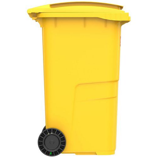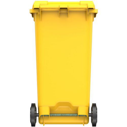 Praktisk søppelkasse til kildesortering. De klare fargene gjør det enkelt å se hvilket avfall som hører hjemme i hvilken beholder. Søppeldunken har to stabile hjul som gjør det enkelt å flytte den. Takket være UV-resistent plastmateriale misfarges ikke søppelbøtten i solen. Produsert i EU Garanti (år) : 3 år Sortering