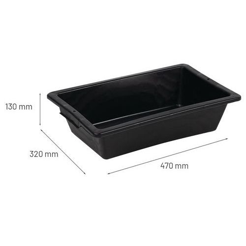| Varenavn | Sort plastbalje, 12 l, Volum: 12 L, materiale: Plastique, Totallengde: 320 mm, Totalbredde: 470 mm |