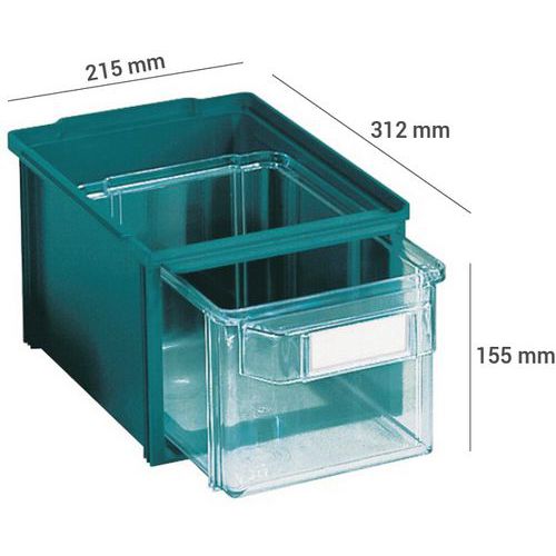 Sortimentboks RHO Kappa, Volum: 7 L, Totalhøyde: 155 mm, Totalbredde: 215 mm, Totallengde: 312 mm