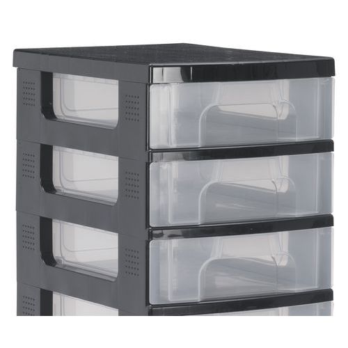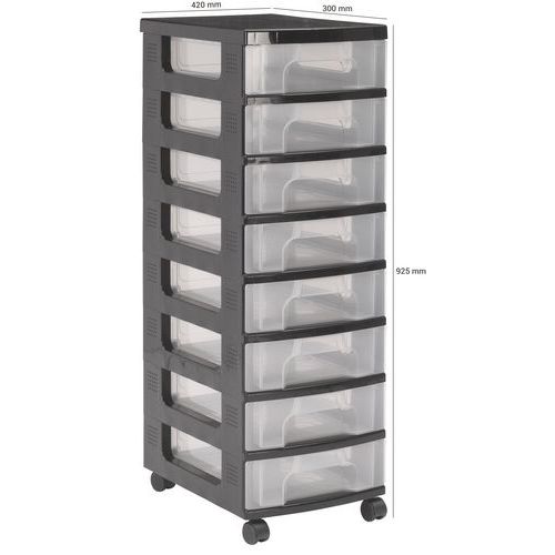Meget letthåndterlig skuffeseksjon med 4 hjul. Gjennomsiktige skuffer for bedre oversikt over innholdet, og tett konstruksjon som beskytter mot støv. Perlehvite overflater på sidene for enkel merking. Produsert i Storbritannia
