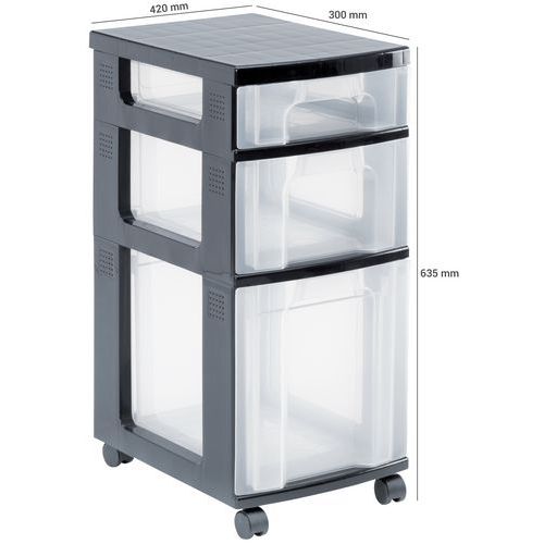Sortimentskap på hjul, Volum: 44 L, Totalhøyde: 635 mm, Totalbredde: 300 mm, Totallengde: 420 mm Sortimentskap på hjul, Volum: 44 L, Totalhøyde: 635 mm, Totalbredde: 300 mm, Totallengde: 420 mm