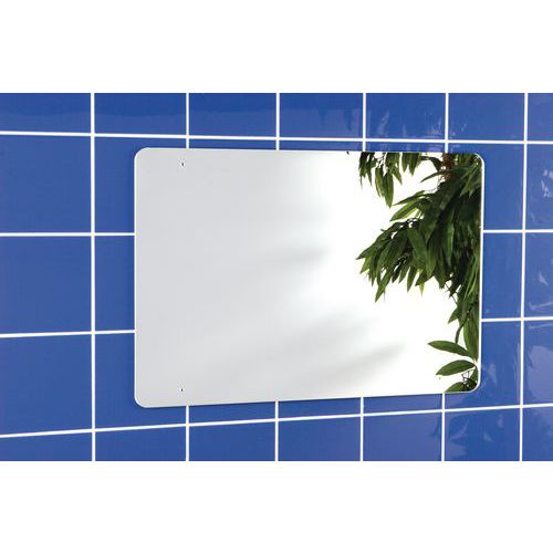 - Rektangulært veggspeil. Med avrundede hjørner. Ripesterkt, og lett å rengjøre. Egnet for miljøer der glass er forbudt. Monteres med tape eller skrue (medfølger ikke).