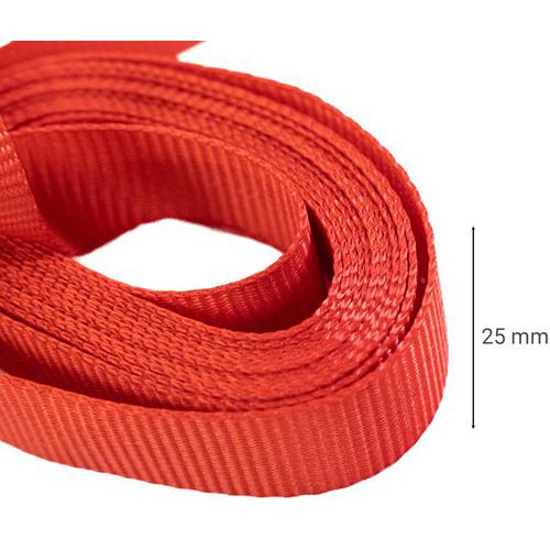 | Varenavn | Spennbånd 250 kg, Lengder: 3 m, Sikker arbeidsbelastning: 250 kg, Bredde: 25 mm, Type krok: Sløyfe, Farge: Rød |