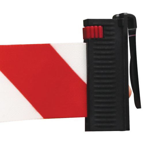 Sperrebånd for veggmontering, består av feste med uttrekkbar reim og festeelement for veggen tvers overfor. Perfekt for avgrensning av flate/rom. Vridbar kassett 180°. Garanti (år) : 10 år