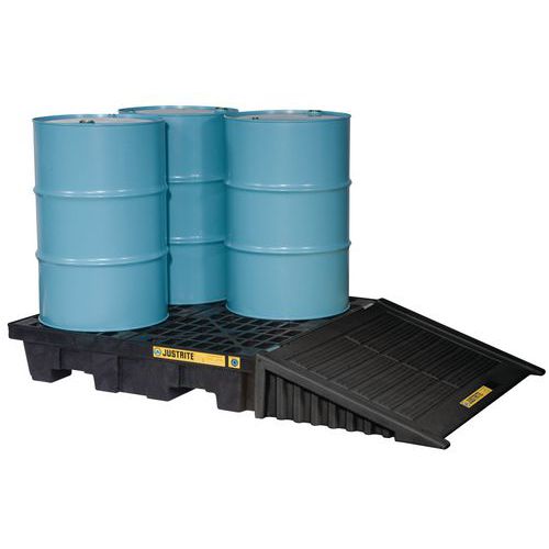 Spillbeskyttelsesbassenger lagd av 100 % gjenvunnet polyetylen. Beskytter miljøet og arbeidsplassen mot spill og lekkasje. Tilpasset oppbevaring av fat. Tåler de fleste kjemikalier som oljer, white spirit, syrer og baser. Ristene er avtakbare og lette å vaske.