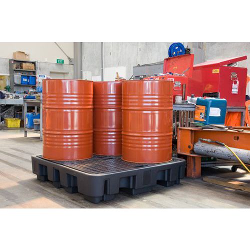 - Spillpall av PE for 4 stk. 200 l fat.