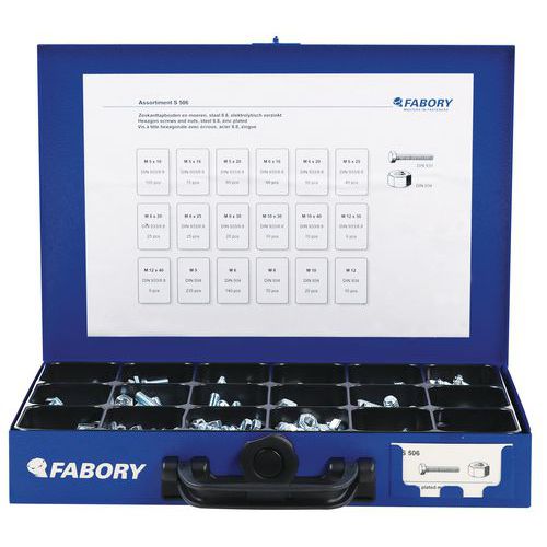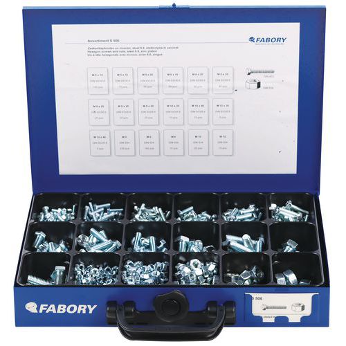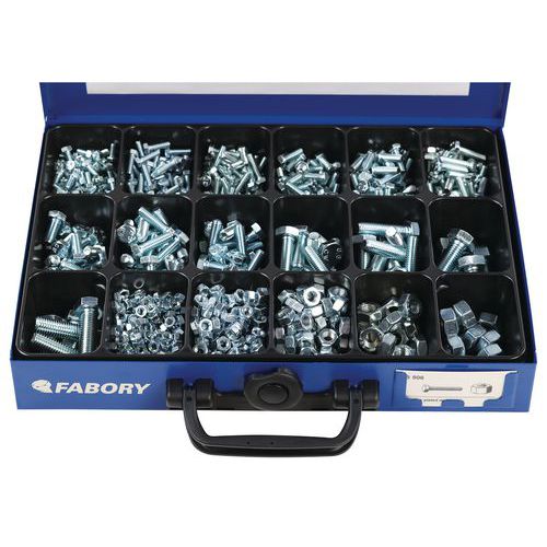 | Varenavn | Stålkasse med sekskanthodebolter for full gjenging med sekskantmuttere – 950 stk, Materiale: Stål |