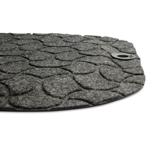 Ståmatten har overside (med faset kant) av slitesterk og smussavvisende resirkulert PET samt underside av polyuretan.