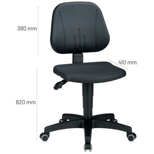 | Varenavn | Stol Unitec 9653-2000, Type fot: Hjul, Sete, materiale: Polyuretan, Modell stoler: Lav, Fotring Ø: nei |