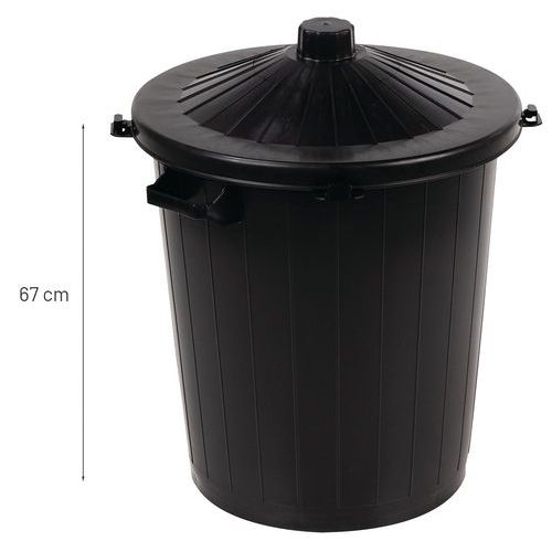 | Varenavn | Svart søppelkasse, Volum: 80 L, Åpning: Foran, Materiale: Polyetylen med høy tetthet, Søppelkasse |