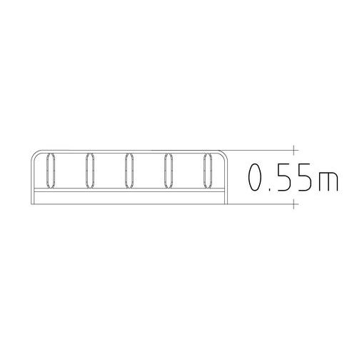 | Varenavn | Sykkelstativ Etta, Totallengde: 2000 mm, Antall plasser: 5, Totalbredde: 2000 mm, Totalhøyde: 550 mm |