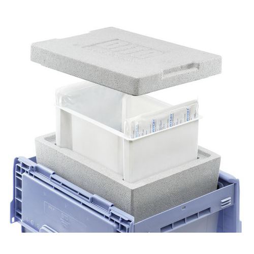 Inkluderer: – 1 Neopor® boks med lokk – 1 vaskbar PS-innsats – 3 Icecatch® solide, isolerte kjøleelementer per innsats
