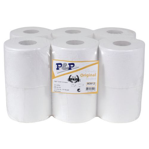 | Varenavn | Toalettpapir Compact – P&P, Lag: 2, Farge: Hvit, Type: Toalettpapir, Materiale: Nyfiber |