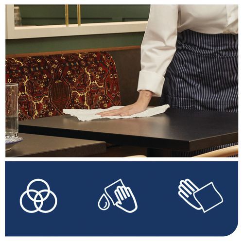 Sterk og ultraabsorberende tørkepapirrull med QuickDry-teknologi. To tykkelser. Forhåndskuttede ark.