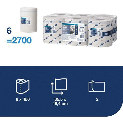 Tork Reflex Plus senterrull, Farge: Hvit, Type produkt: Papirrulle, Lag: 2, Antall format/rull: 450 Tork Reflex Plus senterrull, Farge: Hvit, Type produkt: Papirrulle, Lag: 2, Antall format/rull: 450