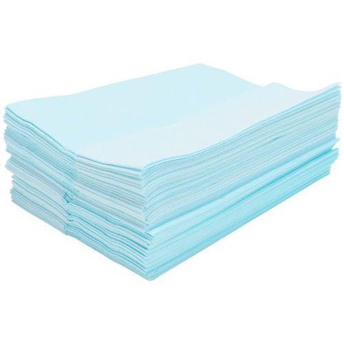 - Turkis/lyseblå tørkeklut som er motstandsdyktig mot kjemikalier og løsemidler.