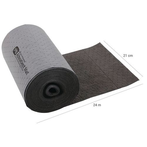Allsidig universal tørkeklut på rull laget av 100% polypropylen. Rullen er 24 m lang og 41 cm bred og absorberer 34,8 liter. Kluten er perforert hver 25 cm og er lett å brette. Leveres i en praktisk boks med håndtak og veier totalt 4,5 kg. Riv litt av kluten ved midlertidig søl som må tørkes opp raskt. Den holder seg på plass, og overflaten er slitesterk. Tørk raskt opp smuss! Duken er sterkere enn vanlige tørkekluter og varer dermed lenger. Fungerer veldig bra ved rask rengjøring av oljete maskiner. Brett duken til en tykk, smal sokk og sug opp lekkasjer under og ved siden av maskinene dine.