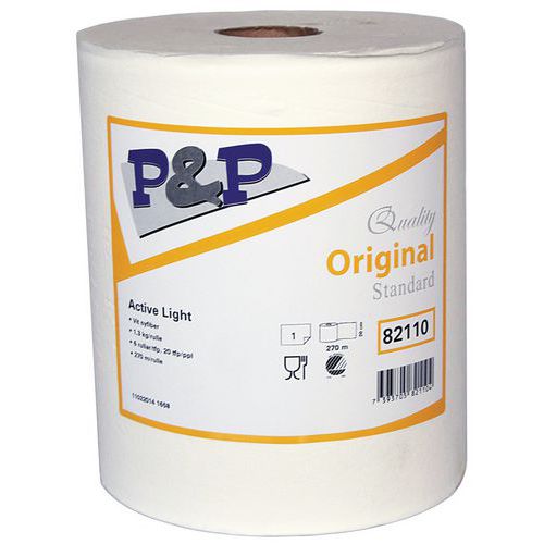 | Varenavn | Tørkepapir Active Easy – P&P, Farge: Hvit, Lag: 1, Lengde: 290 m, Format, bredde: 20 cm, Materiale: Nyfiber |
