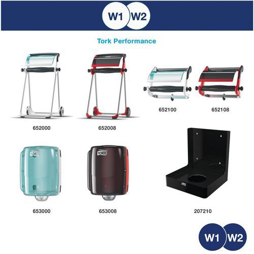 WS-behandlet (Wet Strength) tørkepapir av rent cellulosepapir som forblir sterkt, selv når det er vått. Lett å transportere takket være det ergonomiske E-håndtaket.