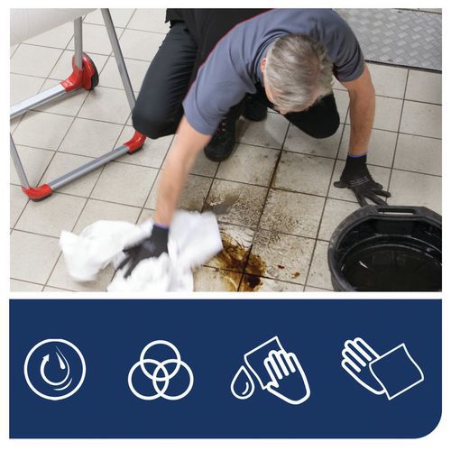 Sterk og absorberende tørkerull for engangsbruk med dobbel tykkelse. 40% høyere sugeevne enn tradisjonelle papirhåndklær. Multifunksjonell: egnet for nesten alle avtørkingsoppgaver. EU Ecolabel-sertifisert og egnet for begrenset kontakt med matvarer. Blå farge for å sikre synlighet når den kommer i kontakt med mat.