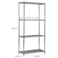 Trådhyllereol Quick-Store+, Maksimal vekt per hylleplan: 175 kg, Høyde: 1600 mm, Antall hylleplater: 4 Trådhyllereol Quick-Store+, Maksimal vekt per hylleplan: 175 kg, Høyde: 1600 mm, Antall hylleplater: 4