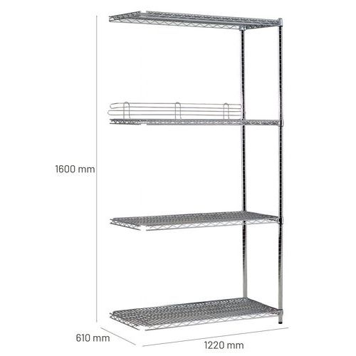 Trådhyllereol Quick-Store+, Maksimal vekt per hylleplan: 175 kg, Høyde: 1600 mm, Antall hylleplater: 4 Trådhyllereol Quick-Store+, Maksimal vekt per hylleplan: 175 kg, Høyde: 1600 mm, Antall hylleplater: 4